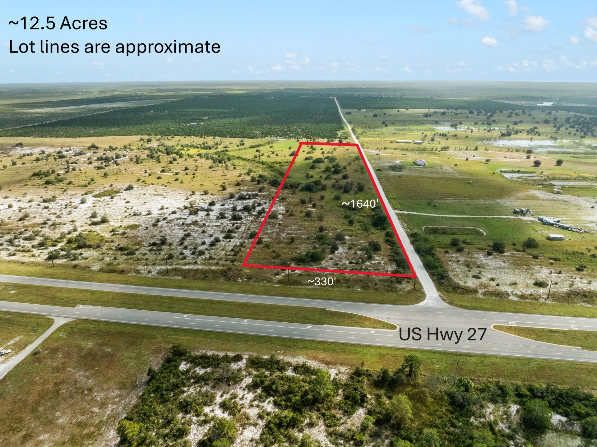 This expansive ~12.5-acre parcel presents an unparalleled opportunity for those seeking a high-demand location with significant growth potential. Boasting an impressive ~330 feet of frontage on well-traveled US Highway 27 N and an extensive ~1,640 feet along Ben Hill Griffin Rd., this property is strategically positioned for the future. This corner lot at a median break enjoys prime visibility and access from both US Hwy 27 N and US Hwy 27 S. Currently zoned for agricultural use and formerly a productive citrus grove, the property is near business zoning. A well is on-site (power unit functionality unknown). This property’s strategic location offers unmatched potential!